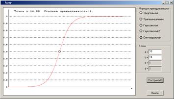 Результат – исполняемое приложение, реализующее построение функций принадлежности и определение степени принадлежности выбранной точки.