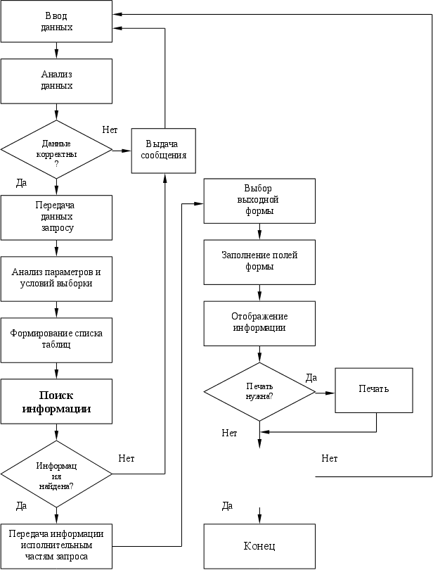 выдачу результатов поиска на экран и на принтер в принятой форме;
