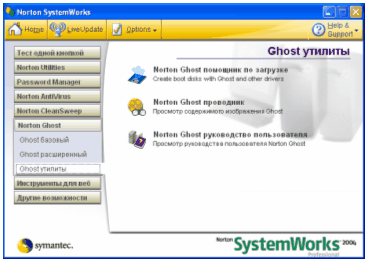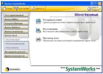 После установки Norton Ghost на компьютер его элементы управления автоматически добавляются в оболочку пакета Norton System Works (рис.1.1).