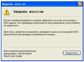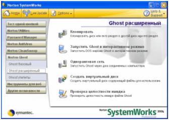● Для резервного копирования и восстановления разделов имеется DOS-версия Norton Ghost, которая позволяет восстановить работоспособность поврежденной операционной системы без необходимости ее загрузки.