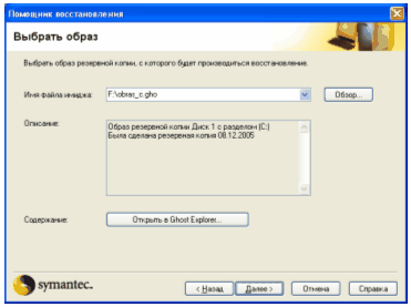 ● Norton Ghost проводник (Norton Ghost Explorer), с помощью этой утилиты можно управлять выборочным восстановлением данных из резервной копии.