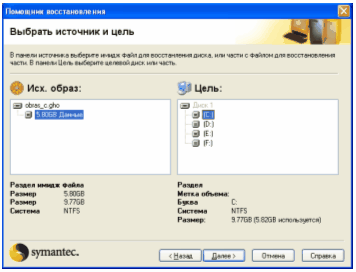 ● Восстановить (Restore) — замещение содержимого жесткого диска (раздела) файлом образа;