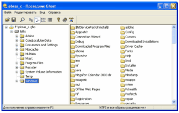 ● С помощью утилиты Ghost Explorer можно редактировать файл образа, созданный для разделов FAT16/FAT32, а также выбирать конкретные папки и файлы, подлежащие восстановлению.