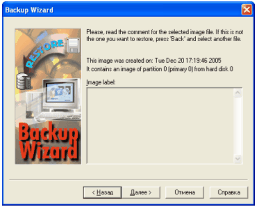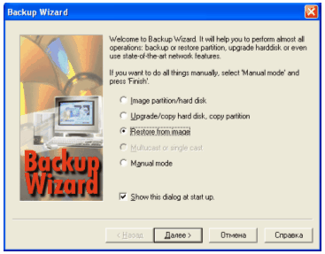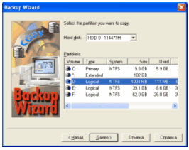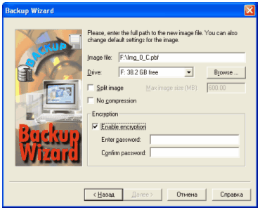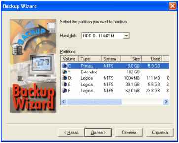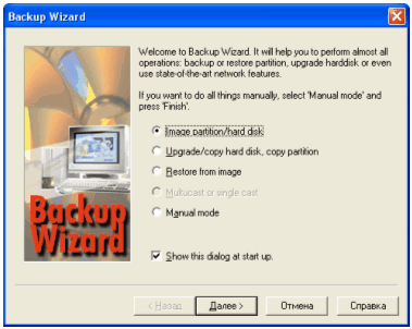 2.3. Создание образа раздела (диска) с мастером Backup Wizard