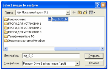 ● С помощью элементов графического интерфейса указать файл образа, который должен использоваться для восстановления, и восстанавливаемый раздел.