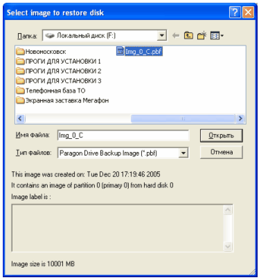 Если файл образа содержит данные нескольких разделов, то в нижнем списке окна для выбора файла образа будут представлены все разделы. Можно выбрать любую комбинацию восстанавливаемых разделов.