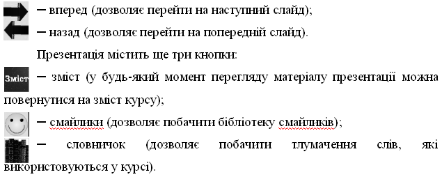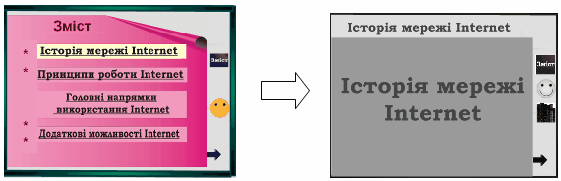 н) можливість «вільної» навігації за інформацією й виходом в основне меню (укрупнений зміст), на повний зміст або зовсім із програми.