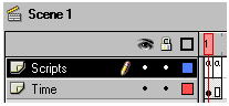 Для створення такого годинника потрібно створити новий муві-кліп. У ньому зробити два шари (Рисунок ): Scripts – для програмного коду і Time – для текстового поля.