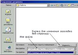 При выборе команды Файл > Сохранить как веб-страницу в поле Тип файла по умолчанию будет указан пункт" веб-страница