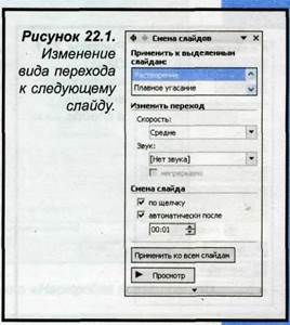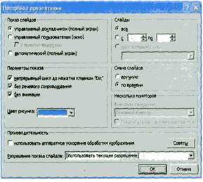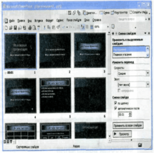 Настройка слайдів має велике значення у презентації. Настроїти слайди можна за часом або за вказівкою користувача, тобто за клацанням мишки. Якщо необхідно поміняти слайди місцями, то це можна зробити за допомогою режиму "Сортировщик слайдов". У цьому режимі можна за допомогою миші, клацаючи нею по необхідному слайдові, Змінити розміщення слайду.