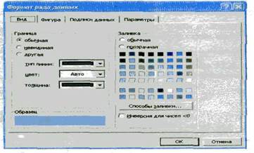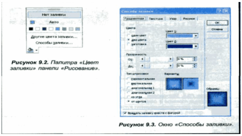 Відкриється палітра кольорів (мал.9.2), в якій клацнути по потрібному кольору. Під палітрою кольорів розташована кнопка "Способы заливки". Клацнувши по ній відкриється вікно "Способы заливки" (мал.9.3).