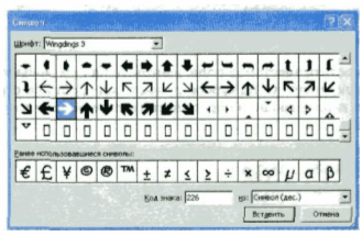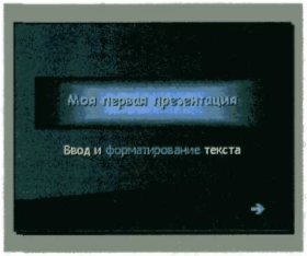 В цьому вікні можна вибрати шрифт "Wingdings 3", а в ньому символ (стрілочка). Потім клацнути по кнопці "Вставить" та "Закрыть". Колір і розмір встановленого символу зміниться таким же чином, як і колір і розмір шрифту. Змінити колір символу на жовтогарячий та встановити розмір наприклад "36". Тепер наш слайд має вигляд, як на (мал.11.2).
