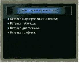 Створюємо другий слайд презентації. В нашому випадку він буде із маркованим списком. Наприклад із змістом презентації.