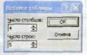 Потім потрібно вставити таблицю, двічі клацнувши по піктограмі таблиці. Відкриється вікно "Вставка таблицы" (мал.14.2).