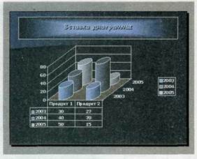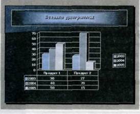 Зараз ця програма дуже популярна серед підприємців, бізнесменів та інше. Можна до вашого слайду також вставити таблицю Excel. Крім вставки таблиць можна також вставити діаграму із різною графічною основою.