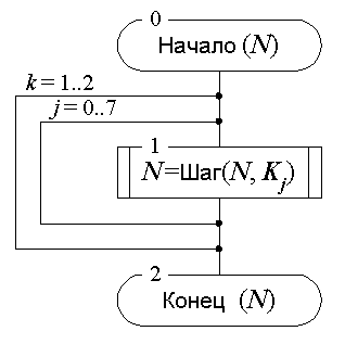 В свою очередь, каждый из базовых циклов представляет собой многократное повторение одной единственной процедуры. Назовем ее основным шагом криптопреобразования.