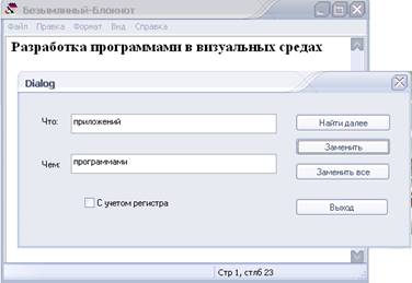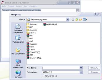 Работа с функциями вызова стандартных диалогов производится следующим образом: