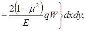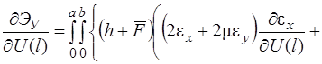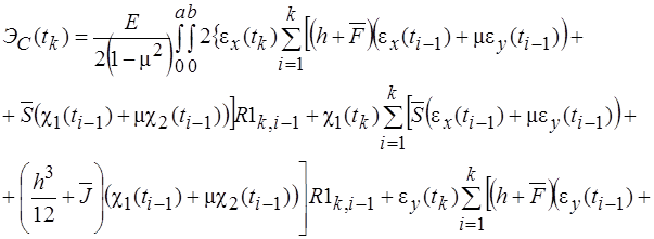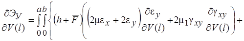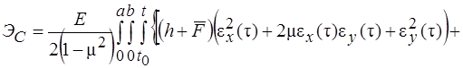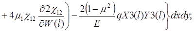 Оболочки покрытия и перекрытия строительных сооружений не могут допускать прогибы, соизмеримые с их толщиной, поэтому можно вести их расчет в геометрически линейной постановке, при этом существенно упрощаются все соотношения. В этом случае функционал полной энергии деформации ребристой оболочки при действии на нее поперечной нагрузки