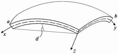 , то геометрия пологой оболочки близка к геометрии пластины, поэтому параметры Ляме приближенно принимаются равными единице: ![]()