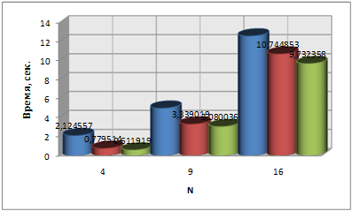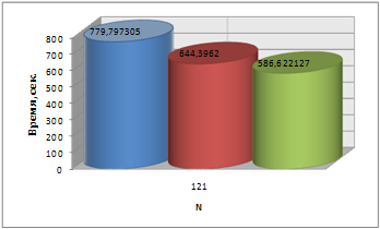Работа выполнена в соответствии с грантом Минобнауки РФ "Развитие научного потенциала высшей школы (2009-2010 г. г)", тема №2.1 2/6146. Разрабатывается программный комплекс расчетов прочности и устойчивости подкрепленных оболочек вращения с учетом различных свойств материала. Используются наиболее точные модели деформирования оболочек. Усложнение расчетных уравнений приводит к существенному увеличению времени расчета одного варианта задачи на ЭВМ при последовательных вычислениях. Чем тоньше оболочка, тем больше изменяемость формы поверхности оболочки при деформировании. Это приводит к увеличению числа членов разложения искомых функций в ряды в методе Ритца, чтобы точность расчетов была высока. Так, при удержании 9 членов в разложении искомых функций (N = 9) время расчета одного варианта, в зависимости от кривизны оболочки и числа подкрепляющих ее ребер, составляет 1-3 часа, при N = 64 - несколько суток. Для существенного сокращения времени расчета одного варианта задачи на ЭВМ требуется оптимизация программы. Один из путей решения данной проблемы состоит в распараллеливании процессов вычисления.