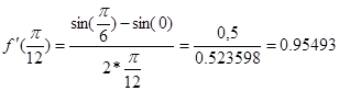 Вычислим производную функции f (x) =sin (x) в какой-либо точке на отрезке [0,π] двумя способами.