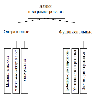 Теоретическую основу языков программирования составляют алгоритмические языки. В настоящее время для ЭВМ разработано значительное количество языков программирования. Они отличаются друг от друга различными свойствами, а значит, и областью применения. Примерная классификация языков программирования приведена на рисунке 1.