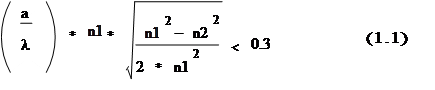 Если неравенство (1.1) не удовлетворено, то в ОВ устанавливается многомодовый режим. Очевидно, что тип модового режима зависит от характеристик оптического волокна (а именно радиуса сердцевины и величины показателей преломления) и длины волны передаваемого излучения. Оптические волокна, предназначенные для работы в одномодовом режиме, называют одномодовыми оптическими волокнами. Соответственно ОВ для многомодового режима называют многомодовыми.