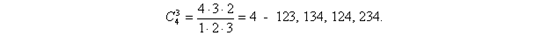 Например, для набора четырех чисел (n=4) - 1, 2, 3, 4 число тройных сочетаний составляет