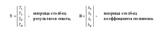 При матричной записи результатов различных N опытов для полиномиального представления результата