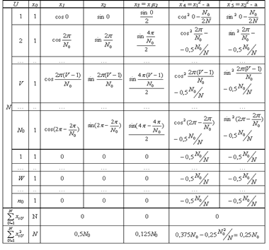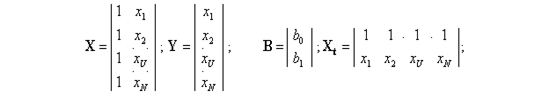 Здесь 0,1, …,i,…, m – номера членов уравнения; 1,…,U,…,N … – номера опытов. Матрица Х - прямоугольная, содержащая m + 1 столбец и N строк.