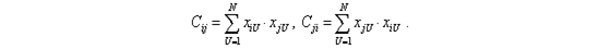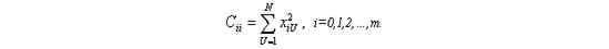 Элемент Сii на главной диагонали матрицы С (i-тая строка, i-тый столбец) представляется суммой квадратов значений i-того столбца сочетаний факторов матрицы Х в N опытах