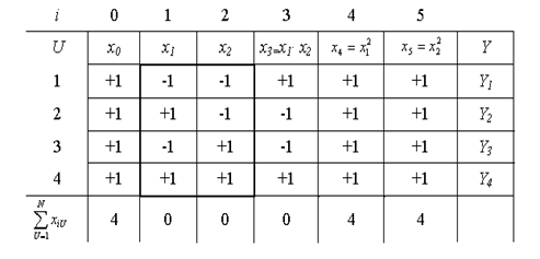 где х0=1, х3=х1х2, х4=х12, х5=х22, b3=b12, b4=b11, b5=b22.