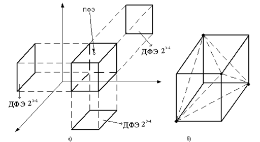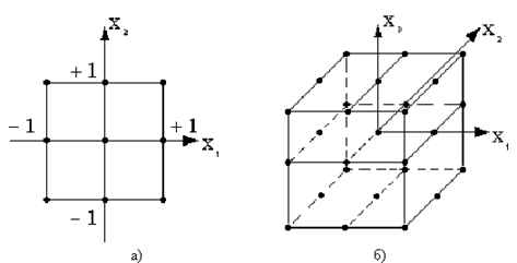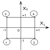 Диапазоны изменения факторов задают область определения Y. Если принять, что каждому фактору соответствует координатная ось, то полученное пространство называется факторным пространством. При n=2 область определения Y представляется собой прямоугольник, при n=3 – куб, при n >3 - гиперкуб.