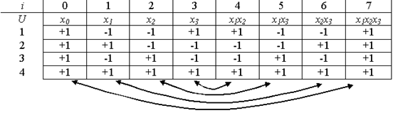 Структура матрицы С играет важную роль в реализации алгоритма определения коэффициентов аппроксимирующего полинома. Структура матрицы С зависит от выбора значений факторов в N опытах. Поэтому желательно особым образом выбирать значения факторов в опытах.