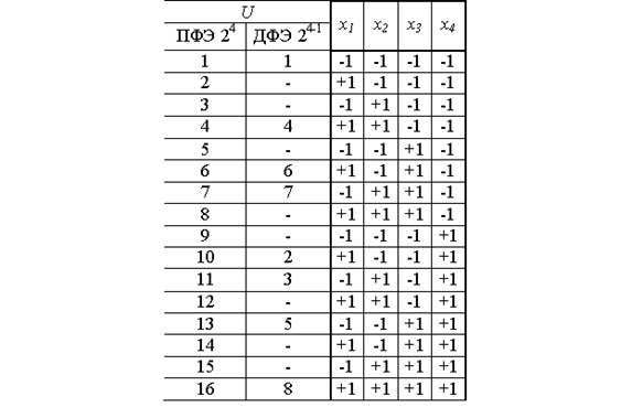 Если фактор изменяется дискретно, например он является качественным, то каждому уровню этого кодированного фактора присваиваются числа в диапазоне от +1 до –1. Так при двух уровнях это +1 и –1, при трех уровнях +1, 0, -1 и т.д.