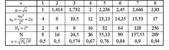 должна равняться радиусу R. Это может быть обеспечено, при выполнении условия ортогональности, только при соответствующем выборе числа наблюдений в центральной (нулевой) точке плана n0. Для РОЦКП n0 зависит от числа факторов n. Напомним, что в ОЦКП n0 = 1 для любого числа n.
