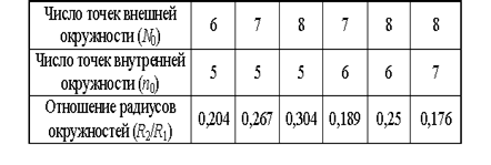 Числа точек окружностей рототабельного плана и отношение их радиусов