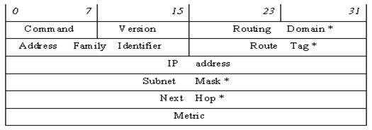 Поля, помеченные знаком *, относятся к версии 2; в сообщениях RIP‑1 эти поля должны быть обнулены.