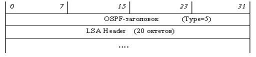 Все объявления о состоянии связей (LSA) состоят из заголовка и тела и пересылаются в сообщениях OSPF типа 4, а заголовки отдельно также пересылаются в сообщениях типа 2 и 5. Заголовок LSA имеет одинаковый формат для всех типов LSA.