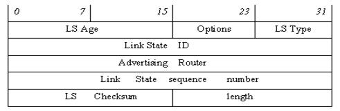 · length (2 октета) – длина LSA в октетах, включая 20 октетов заголовка LSA.