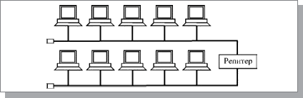 Рис. 3. Соединение сегментов сети типа шина с помощью репитера