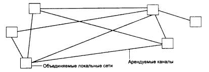 Однако часто такая вычислительная глобальная сеть по разным причинам оказывается недоступной в том или ином географическом пункте. В то же время гораздо более распространены и доступны услуги, предоставляемые телефонными сетями или первичными сетями, поддерживающими услуги выделенных каналов. Поэтому при построении корпоративной сети можно дополнить недостающие компоненты услугами и оборудованием, арендуемыми у владельцев первичной или телефонной сети.