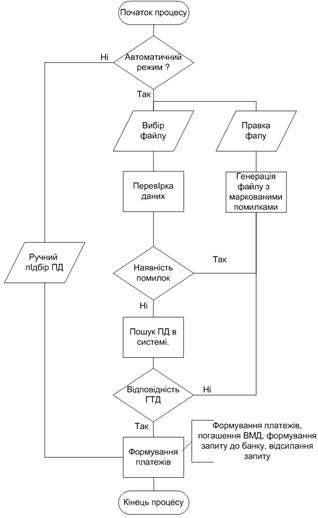 Вхідною інформацією є дані по контрактам, файли імпорту ВМД інших банків.