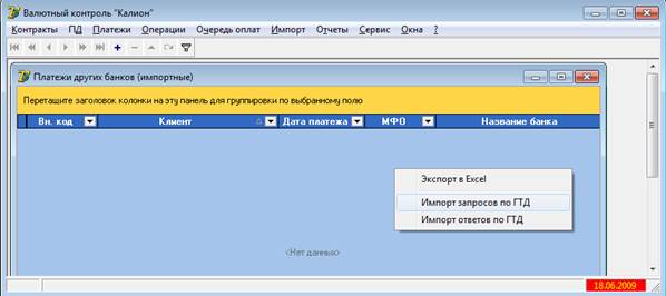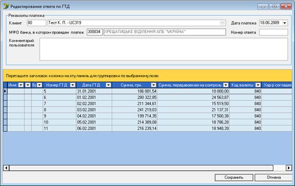 Мета – автоматизувати роботу ведення контролю по деклараціям, суми яких погашені в різних банках. В рамках даної задачі потрібно забезпечити формування платежів за вантажними митними деклараціями (ВМД), переданих на контроль в інші банки в двох режимах: при ручному формуванні звіту «Відповідь» за імпортно-експортними ВМД та в результаті імпорту EXCEL файлу з сумами ВМД, переданих під контроль до іншого банку; автоматичне квитування дати ВМД, обробку файлу імпорту з перевіркою на коректність; автоматичне формування запитів за ВМД за певний період та інше.
