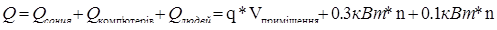 Проведемо аналіз потужності за охолодженням з урахуванням необхідної продуктивності за обсягом повітря, що подається в приміщення. Для розрахунку потужності охолодження необхідно врахувати всі теплопритоки й тепловиділення в приміщенні в найбільш несприятливі погодні умови.