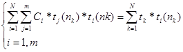 for(i=0;i<N-1;i++) cout<<"\n\t\t\t\tC"<<i<<'='<<A[i][M];
