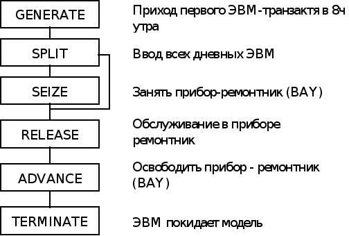 5. GPSS- модель процессов эксплуатационного обслуживания. Основные операторы языка.
