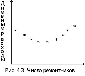 Из последней таблицы можно сделать вывод о том, что наиболее выгодным соотношением является 4 ремонтника и 4 арендуемые машины.