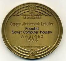 Международное признание пришло к Лебедеву много лет спустя после кончины. Международное компьютерное общество IEEE Computer Society удостоило С. А. Лебедева своей высшей наградой - медалью «Computer Pioneer Award» за выдающиеся новаторские работы в области создания вычислительной техники. На медали написано: «Сергей Алексеевич Лебедев. Разработчик и конструктор первого компьютера в Советском Союзе. Награжден в 1996».