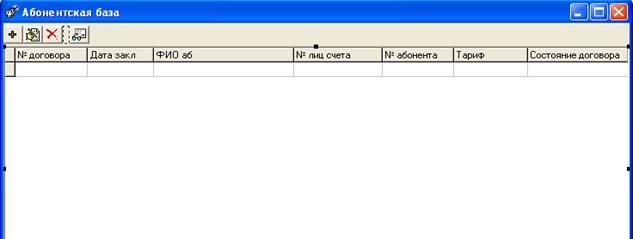 Окно «Абонентская база» предназначено в основном для ускоренной навигации по программе, а также содержит стандартные пункты меню, такие как: файл, правка и окно.